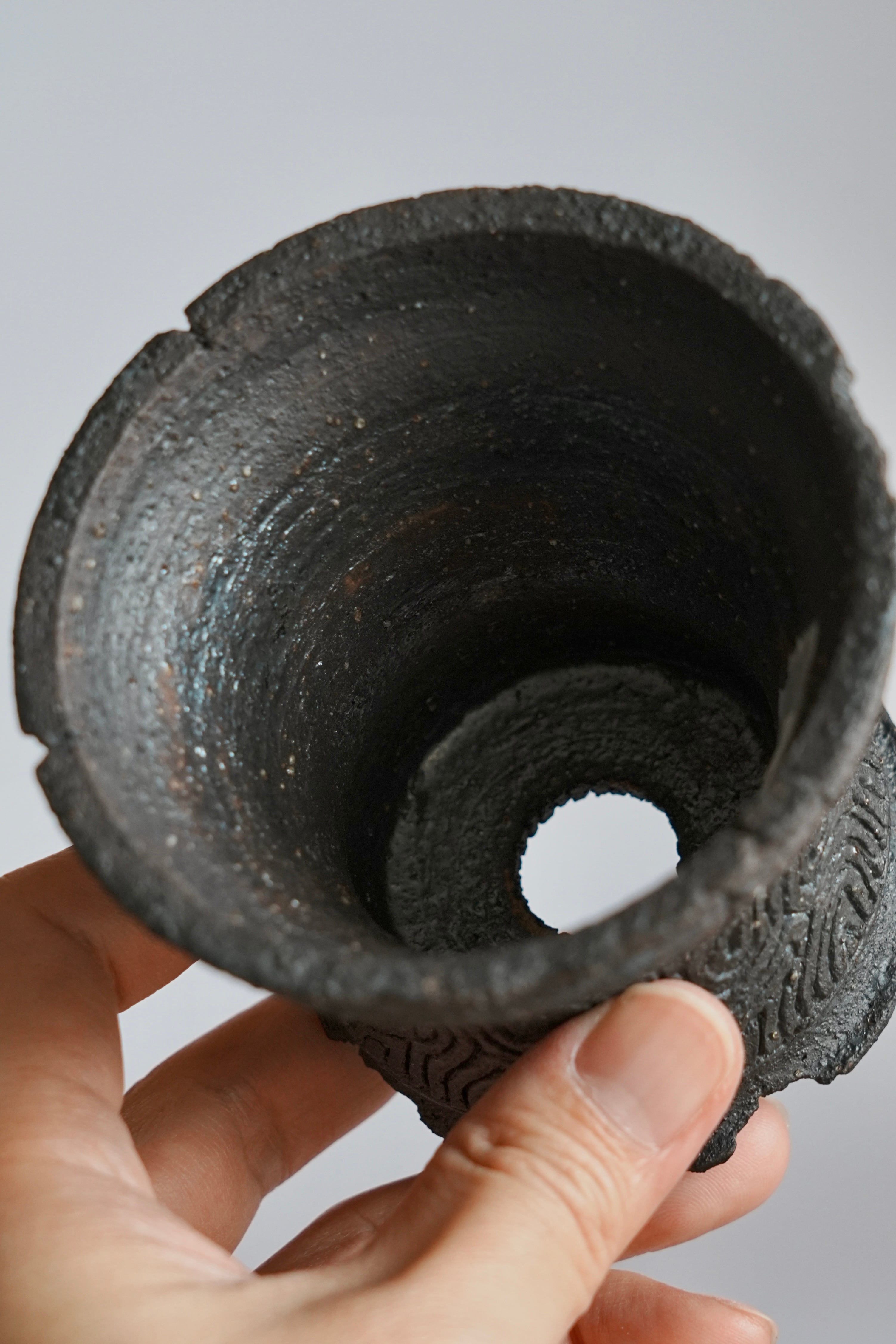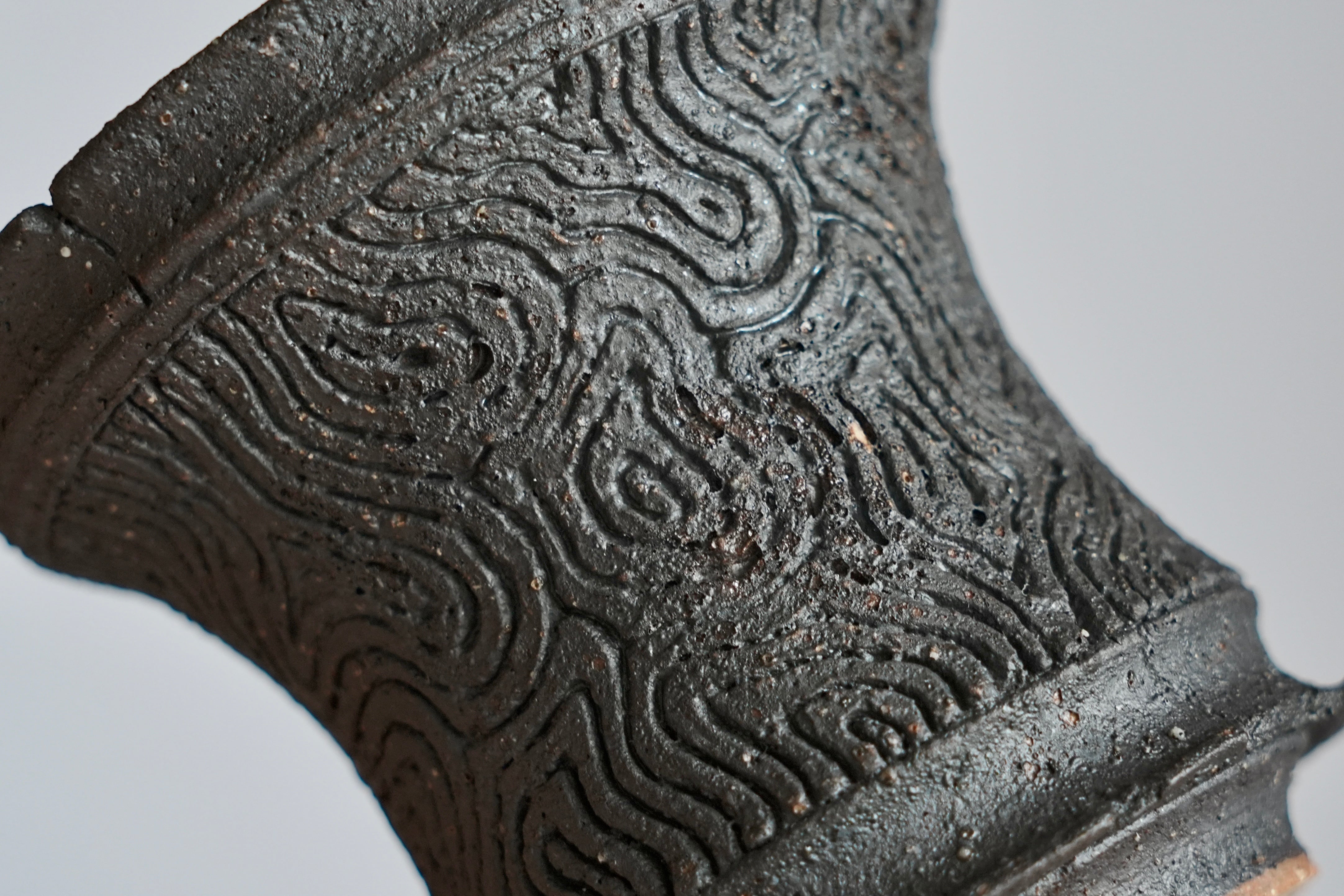 ぐるぐるでどろどろとした文様は風、水、大地など自然を取り巻くあらゆる流れ、万物流転の常ならぬ世を表しています。