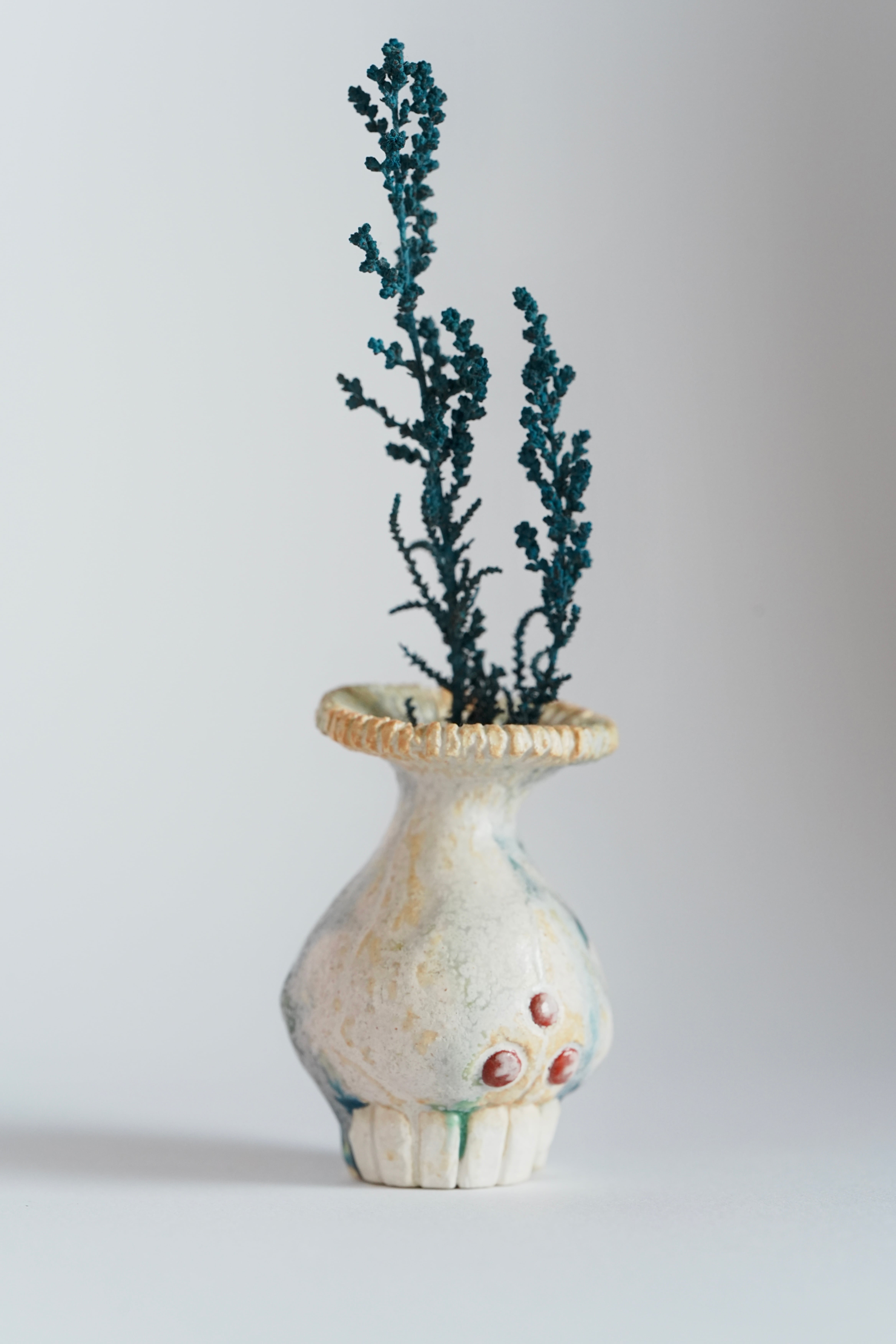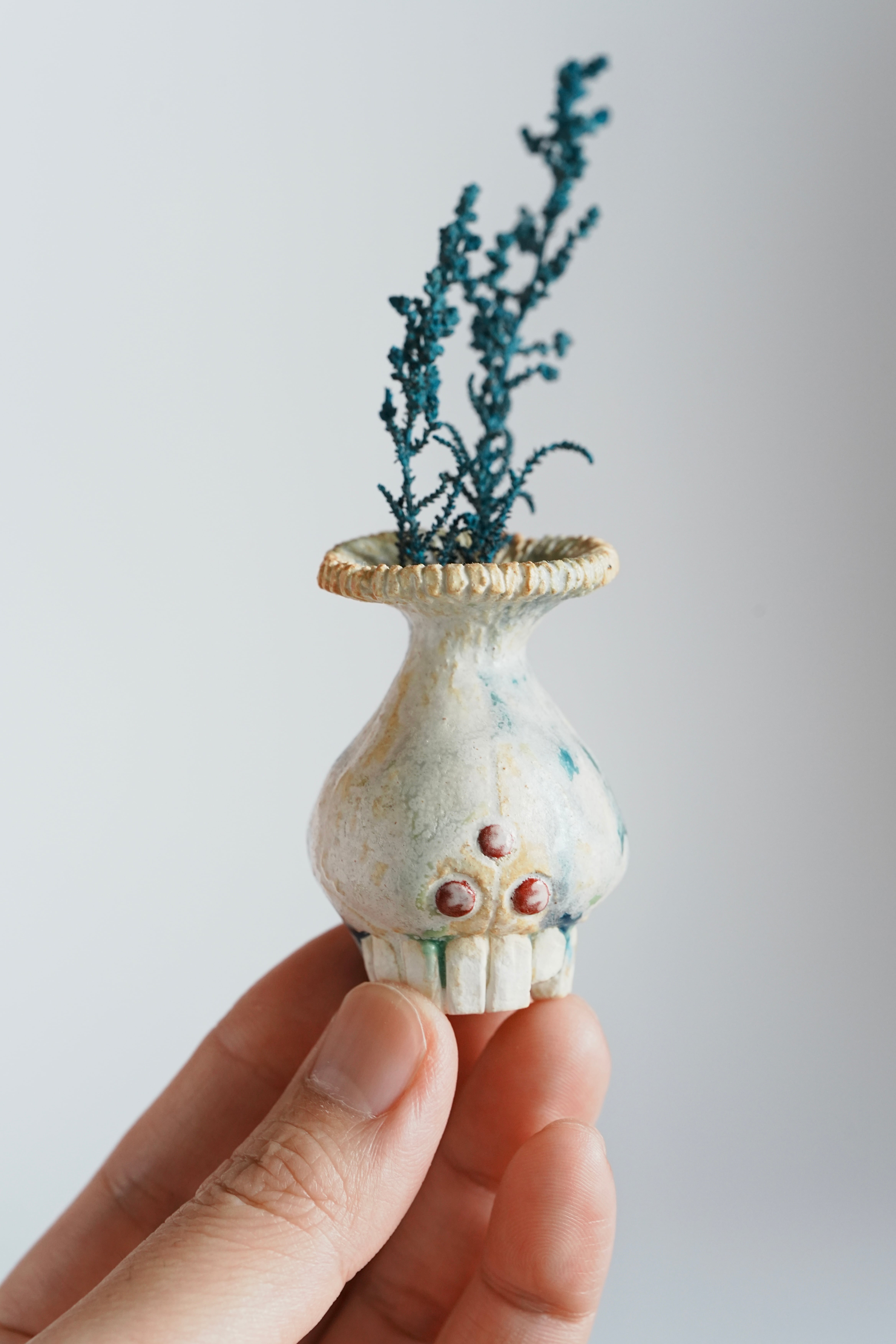 生花を挿すのか、ドライフラワーを挿すのか。挿すものによって意味合いが変わる、ドクロの形を模した小さな花器です。