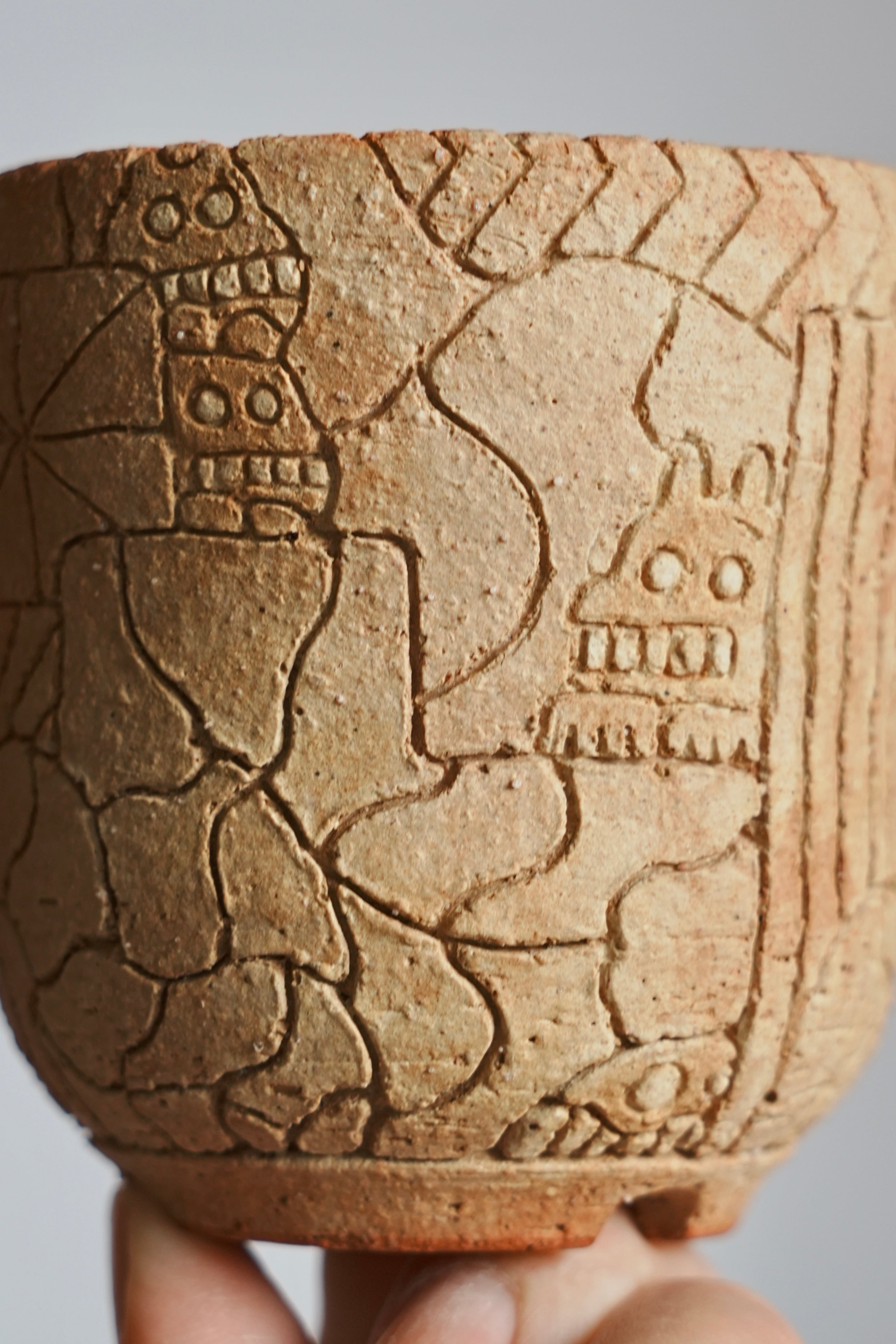 いろんな表情をもつオベサをモチーフにした植木鉢。シルエットも実際に育てているオベサがベースになっています。