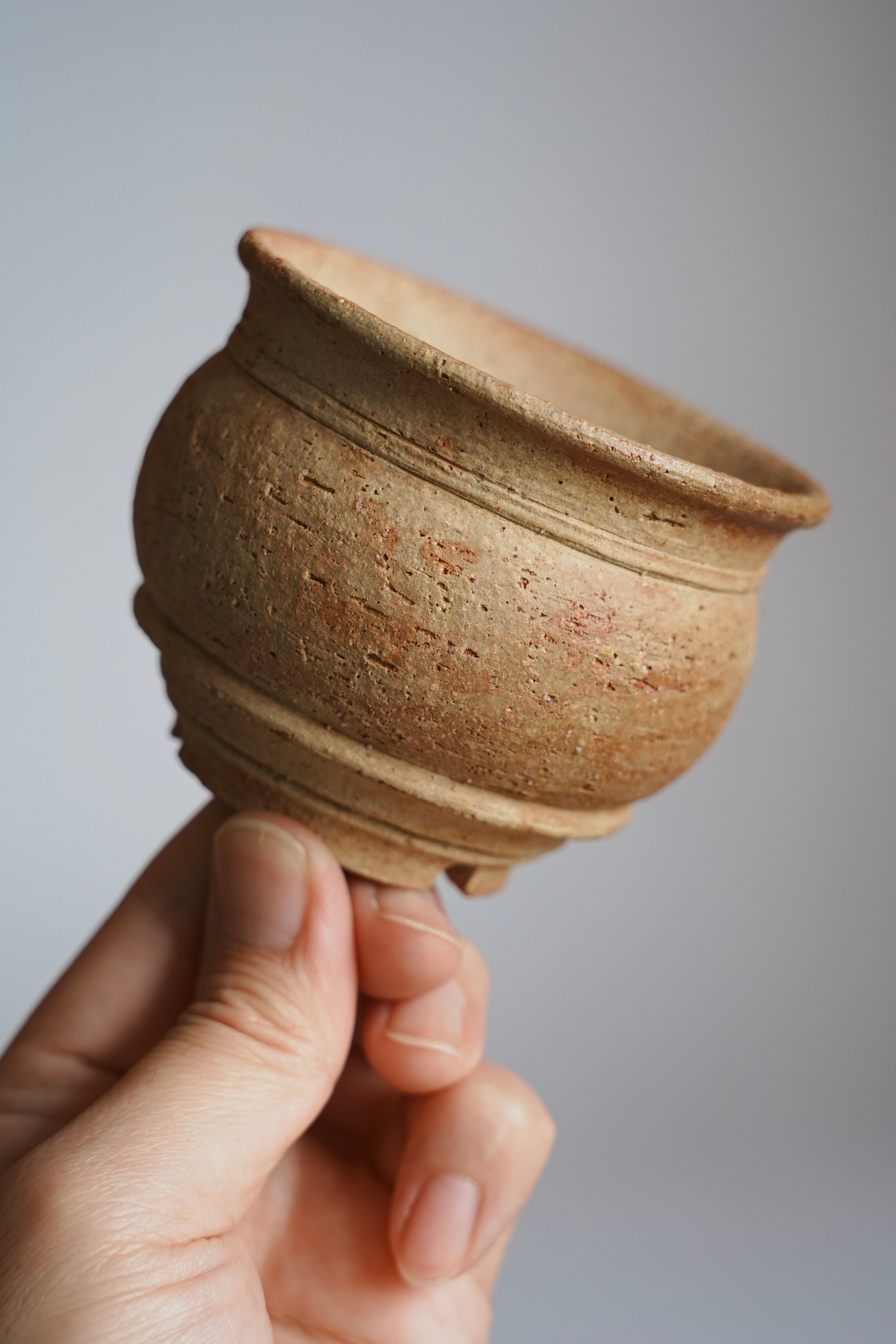 どことなく古い遺跡から発掘されたような雰囲気が漂う壺型の植木鉢。