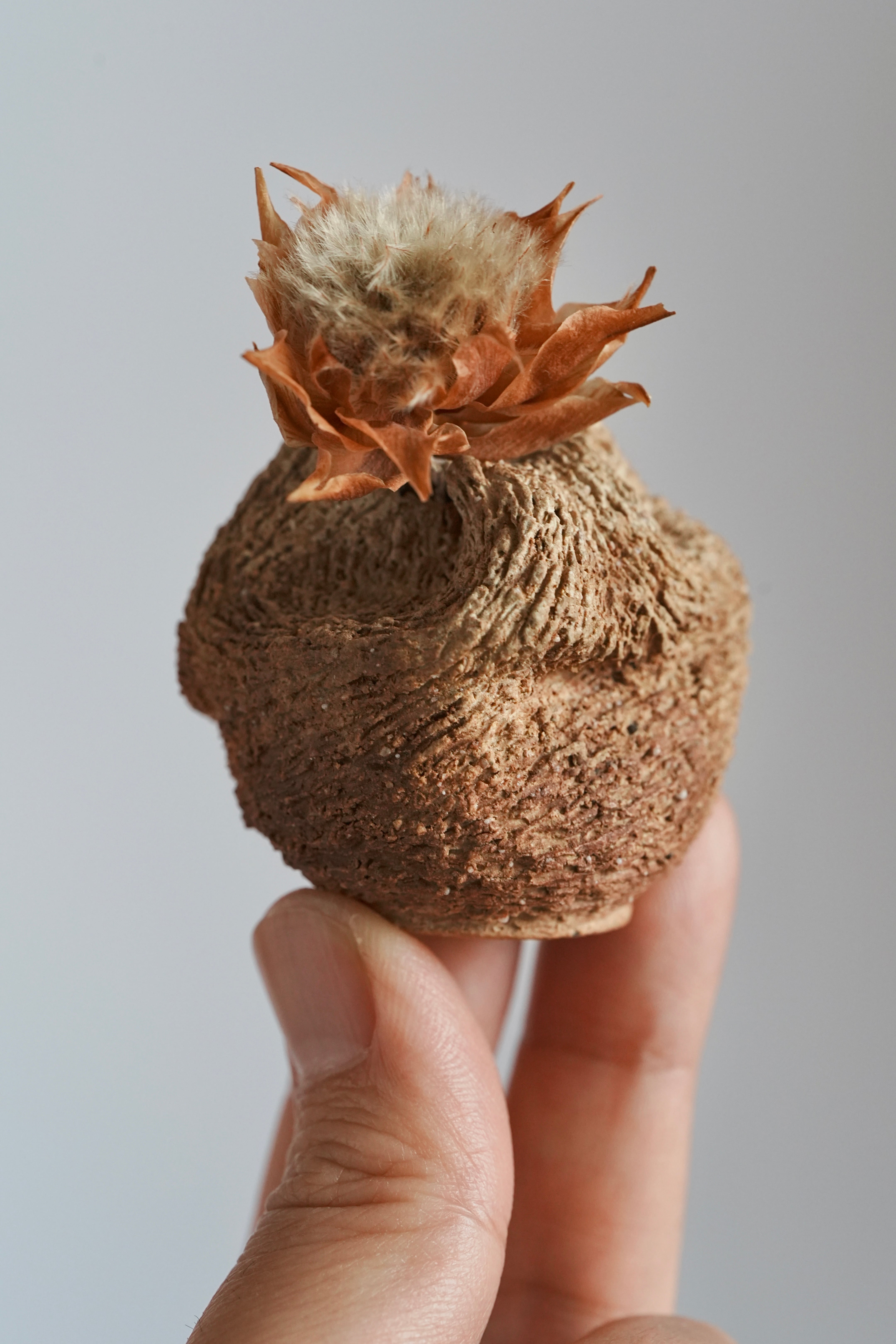 どこか生きものの気配がするうつわとドライフラワーを合わせることで、乾いているけど生きているような景色が見えてこないかと探求しているシリーズです。