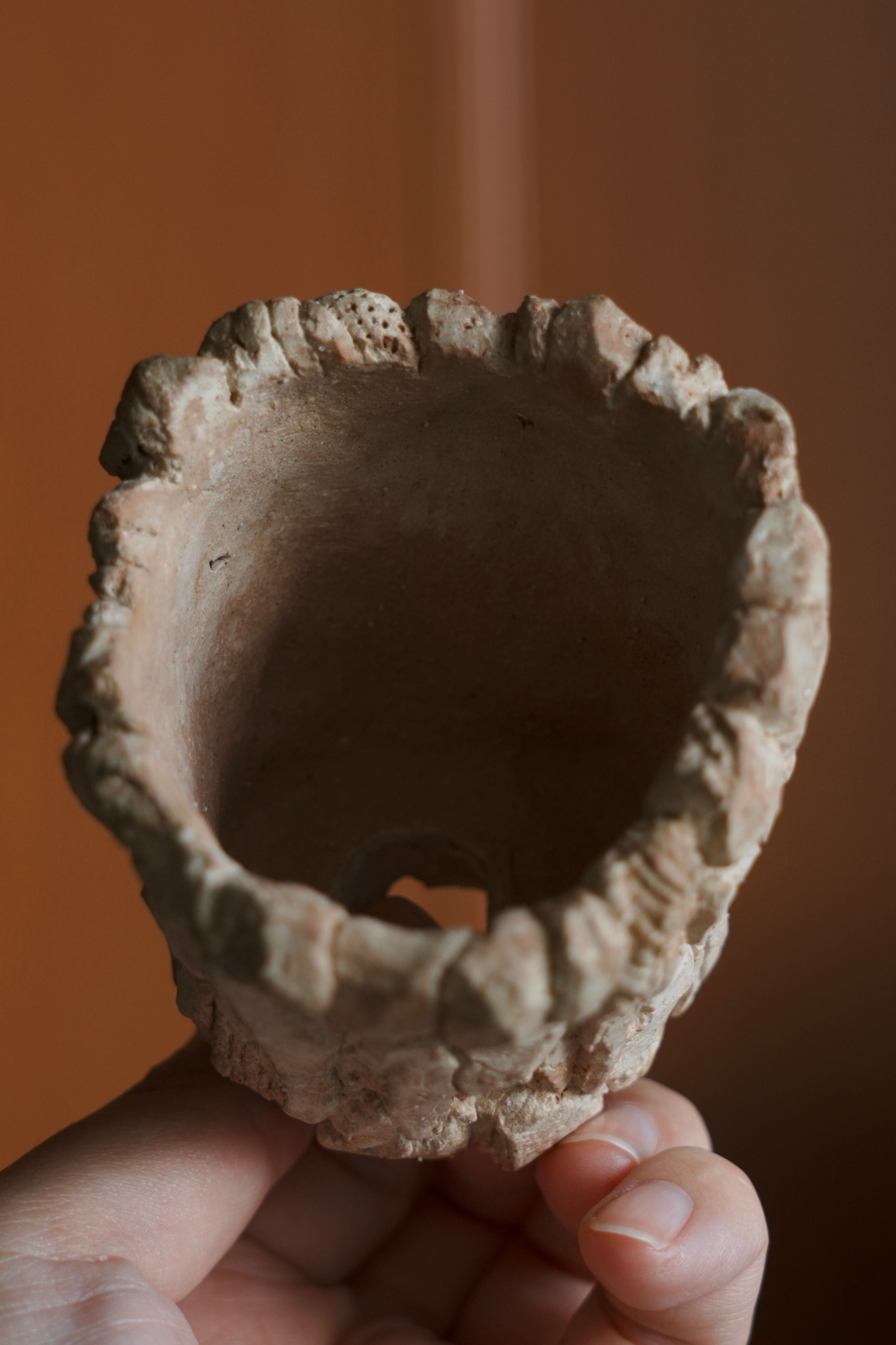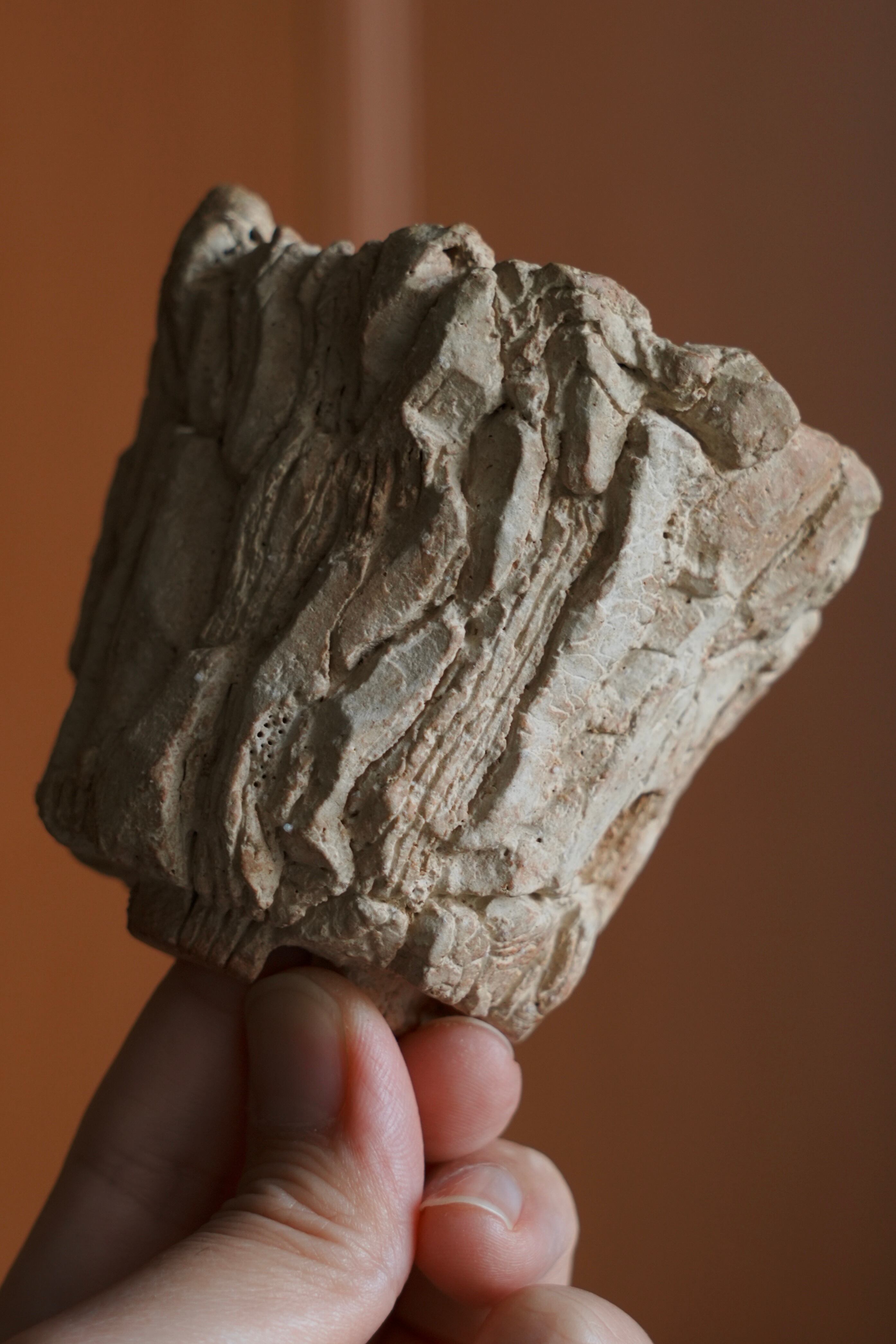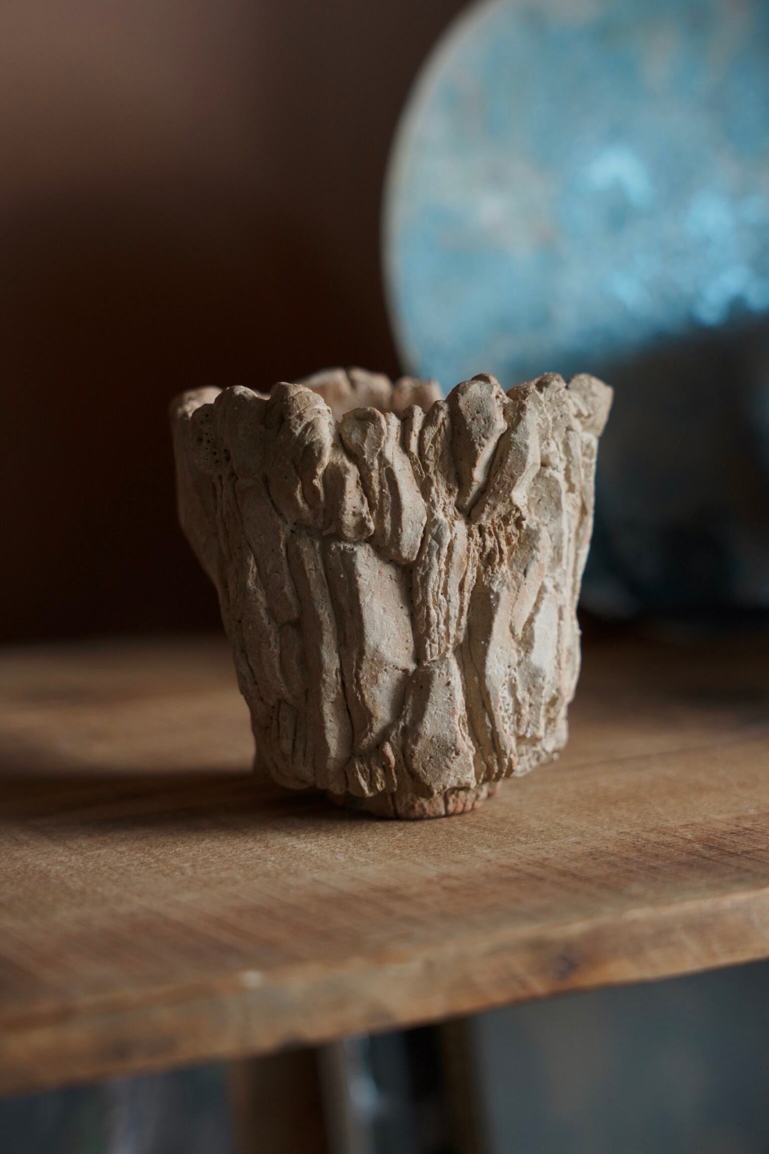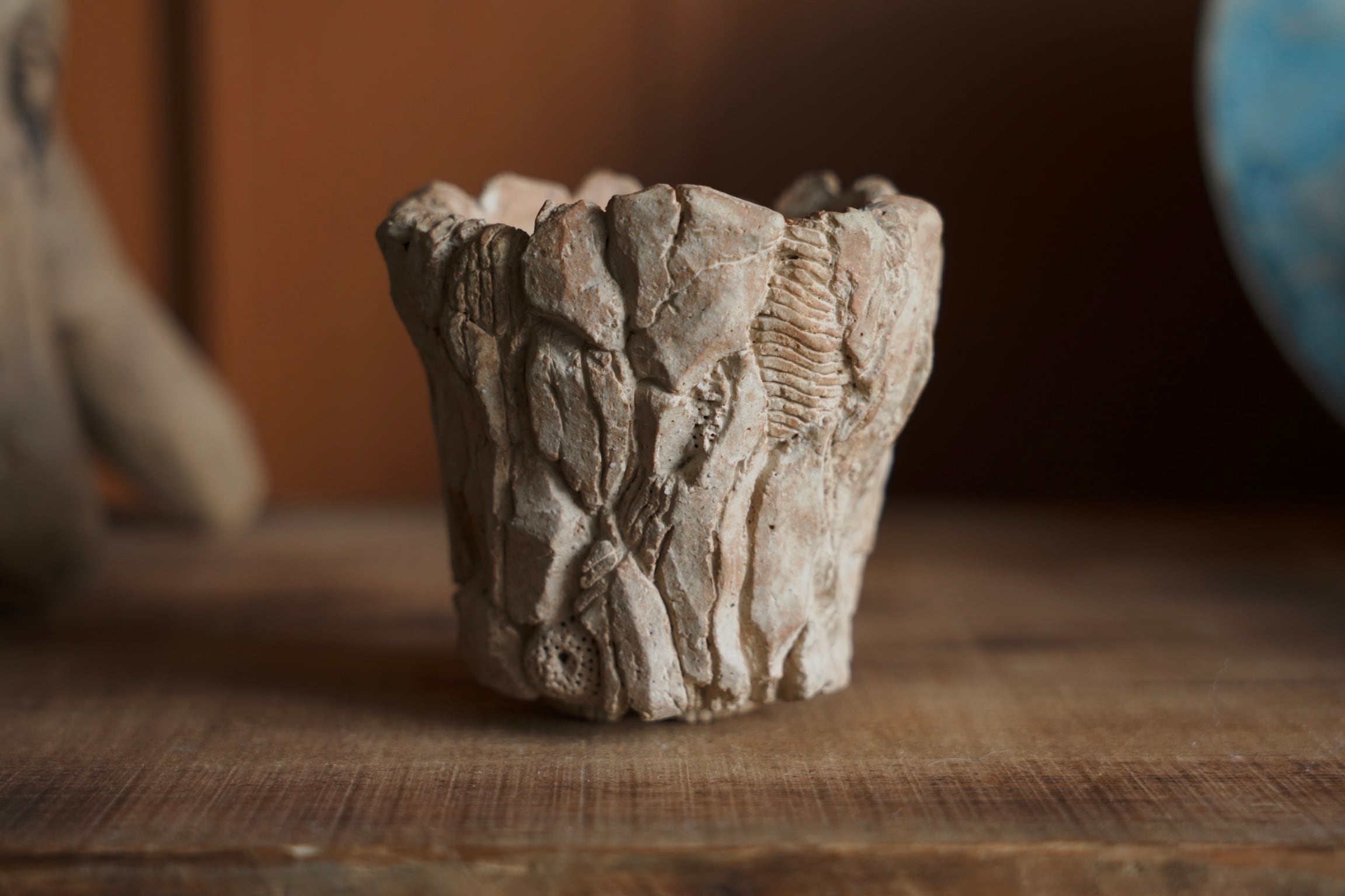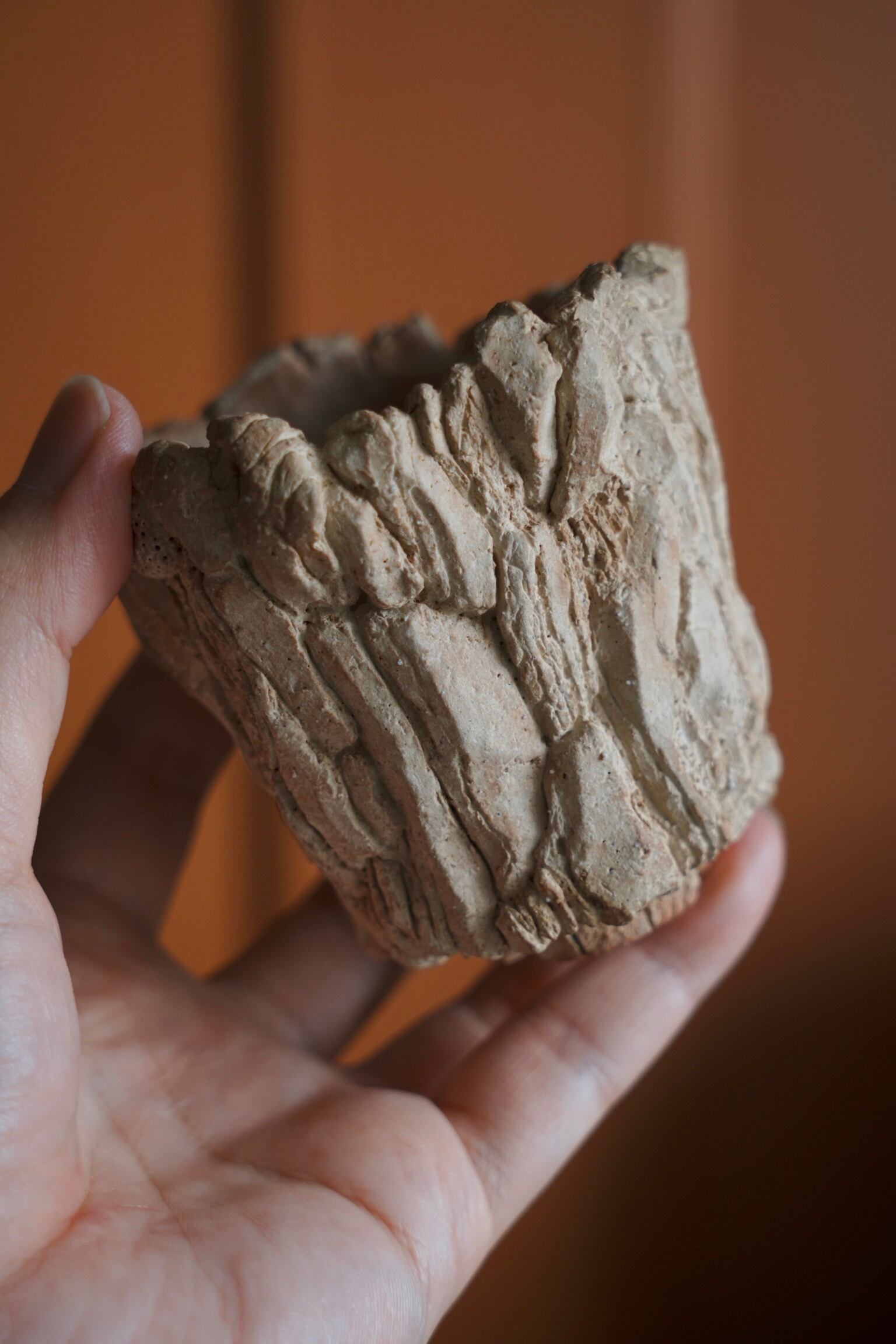 古木の幹肌のような、モニュメントバレー岩壁のようなものをイメージした植木鉢。