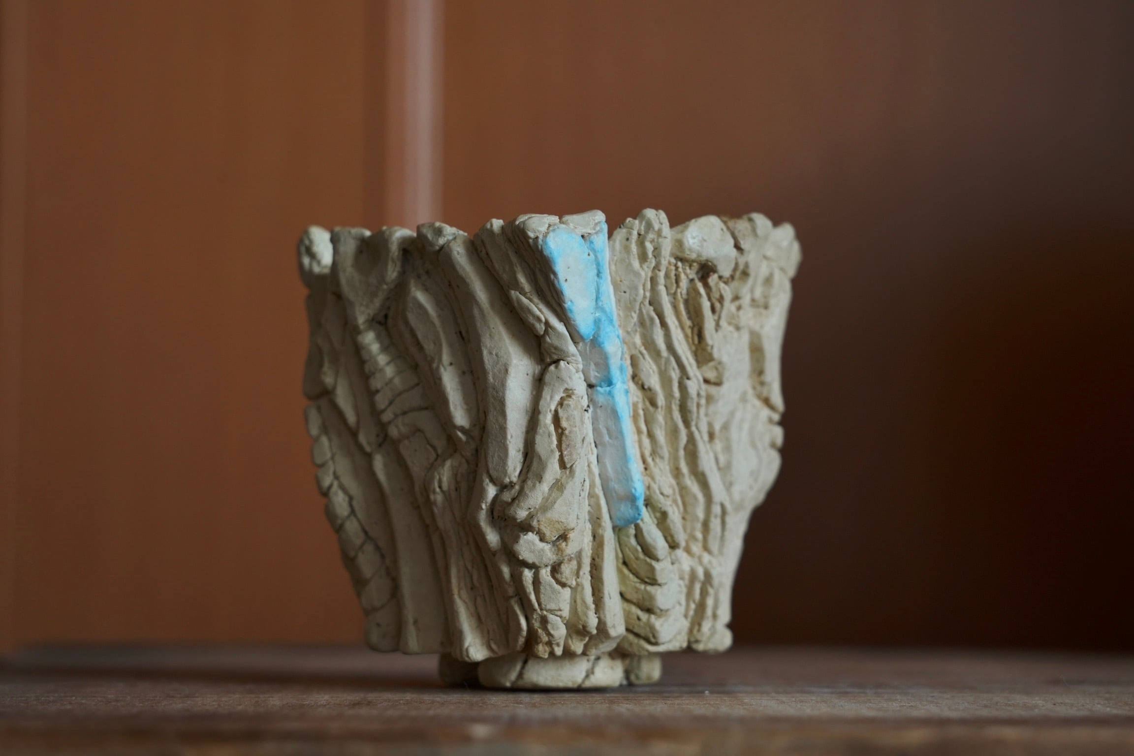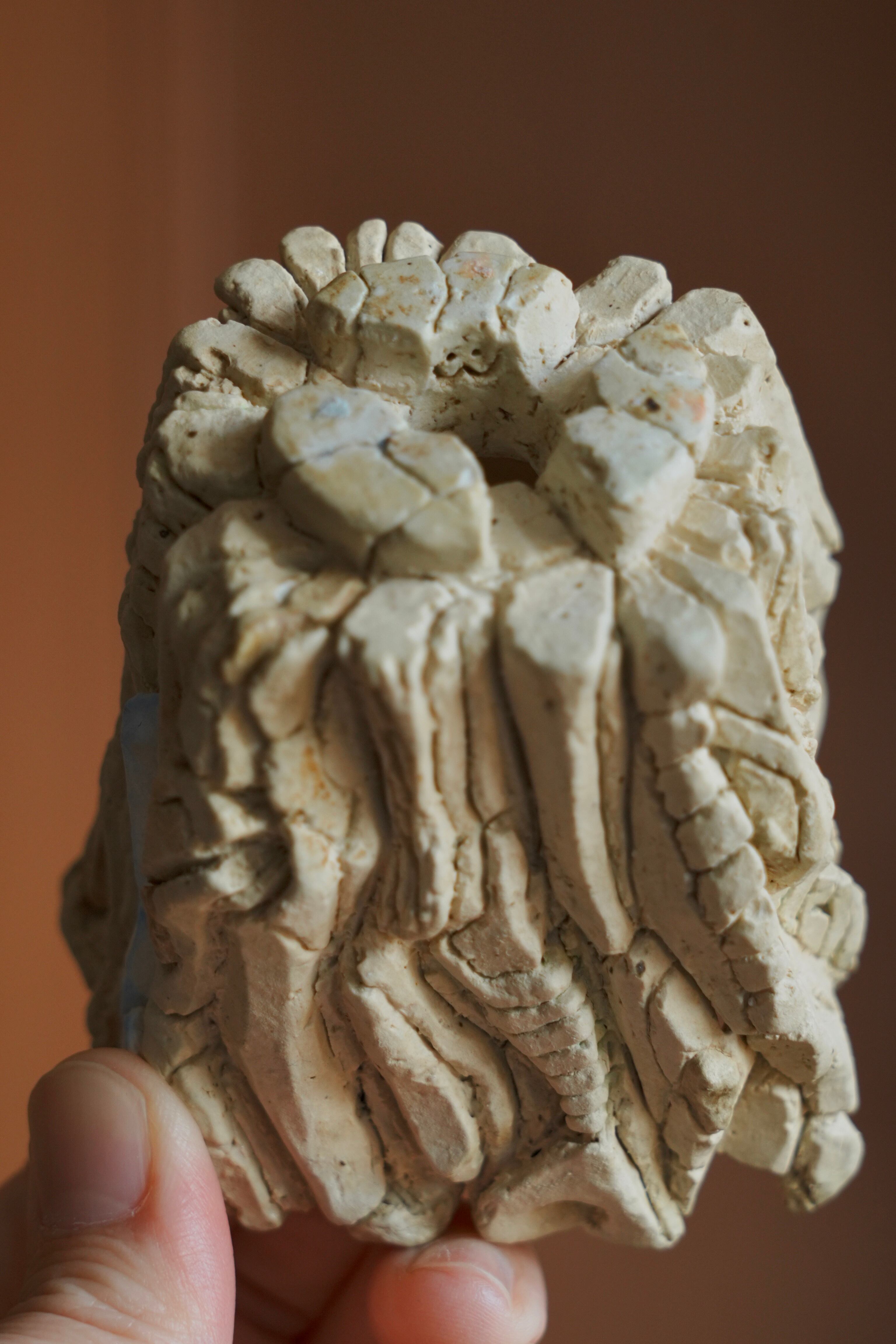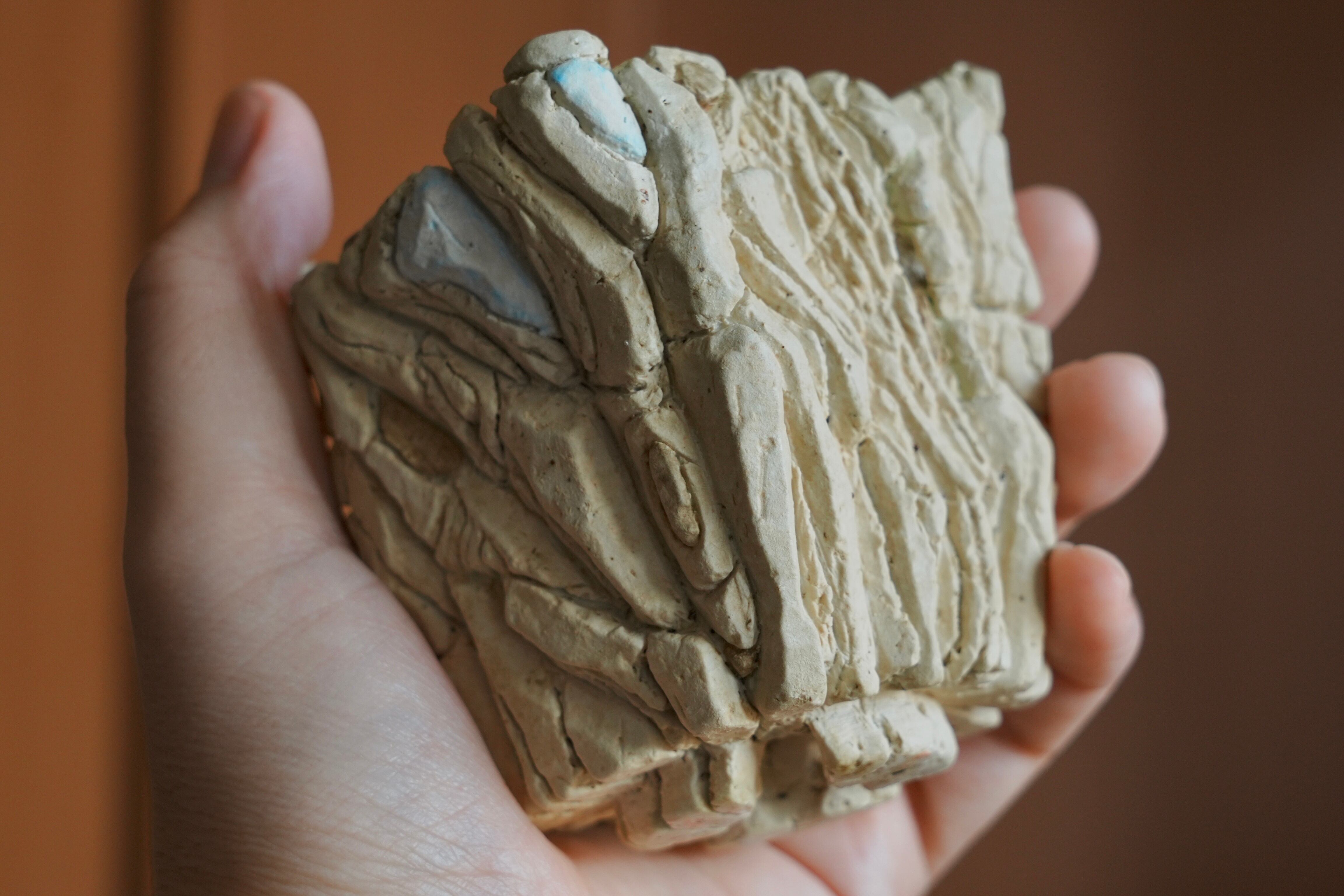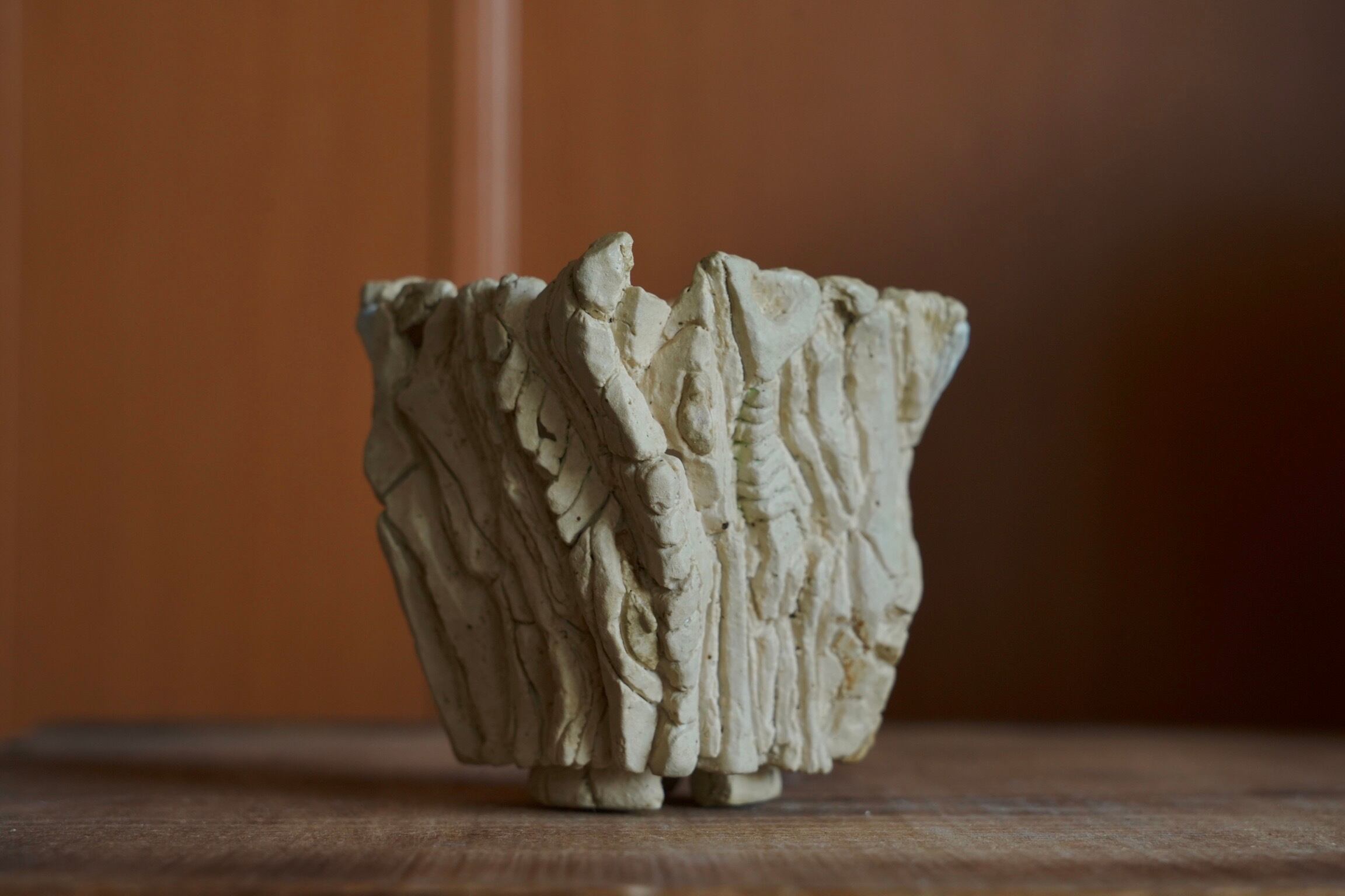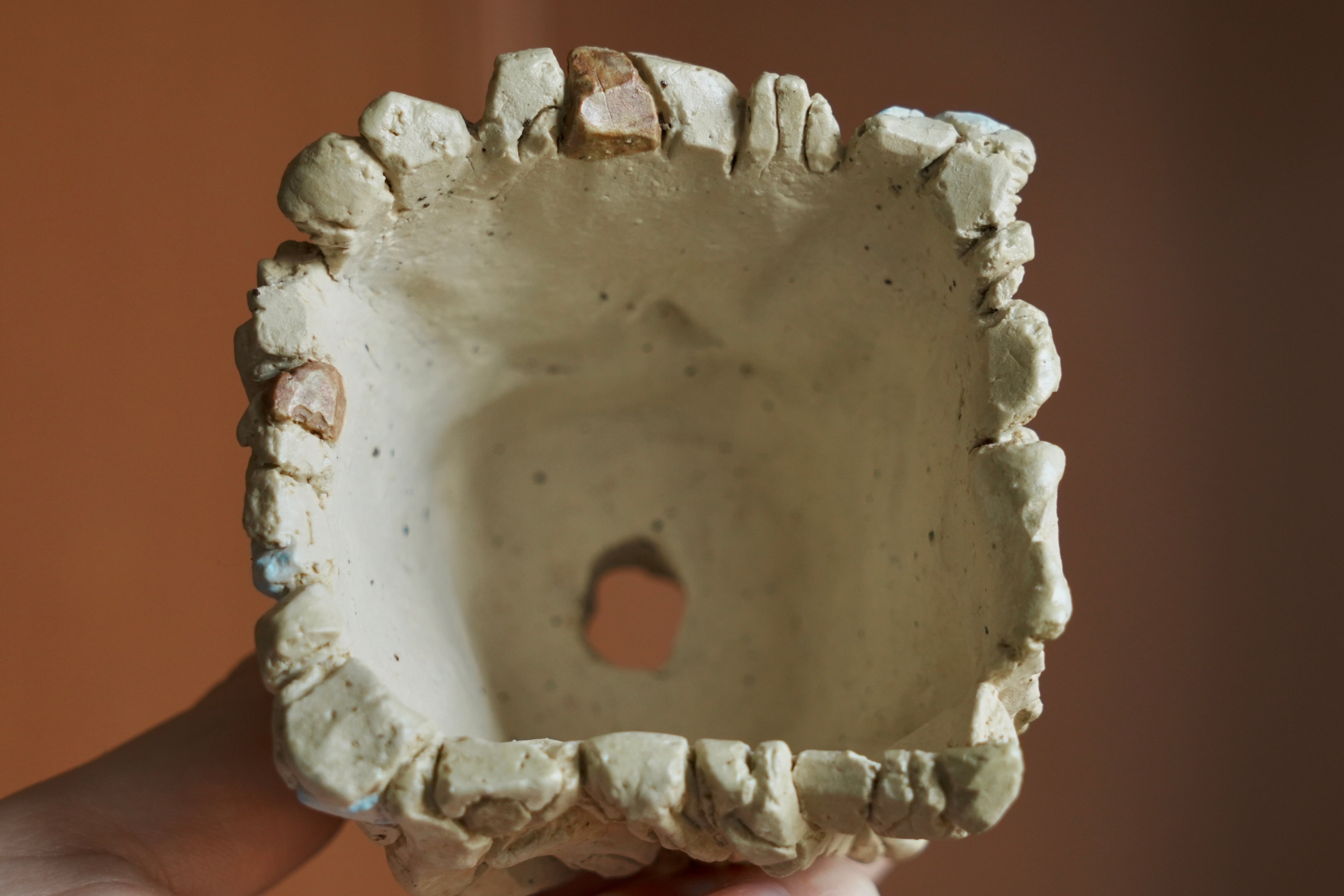 手のひらに荒々しい景色が広がる植木鉢。