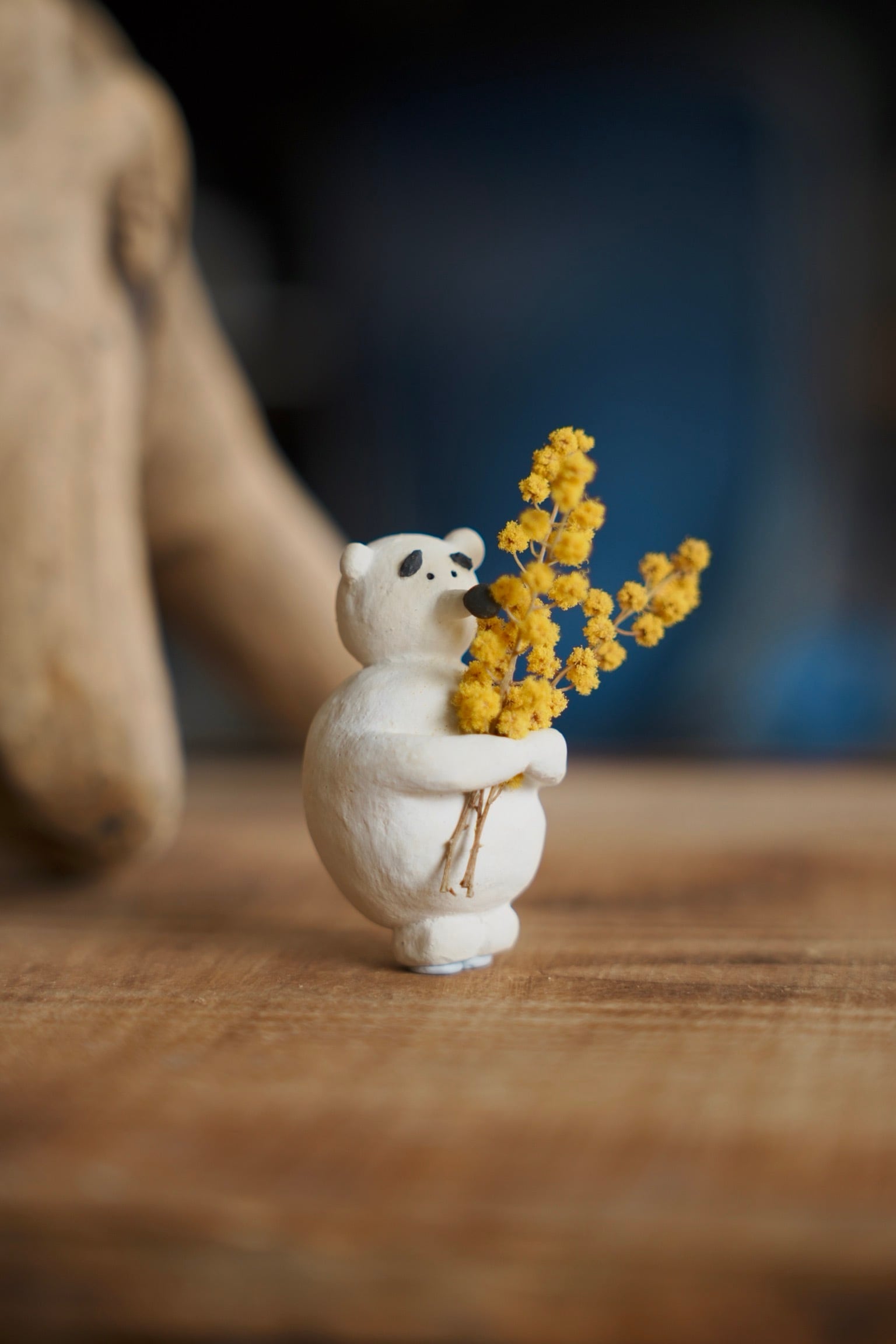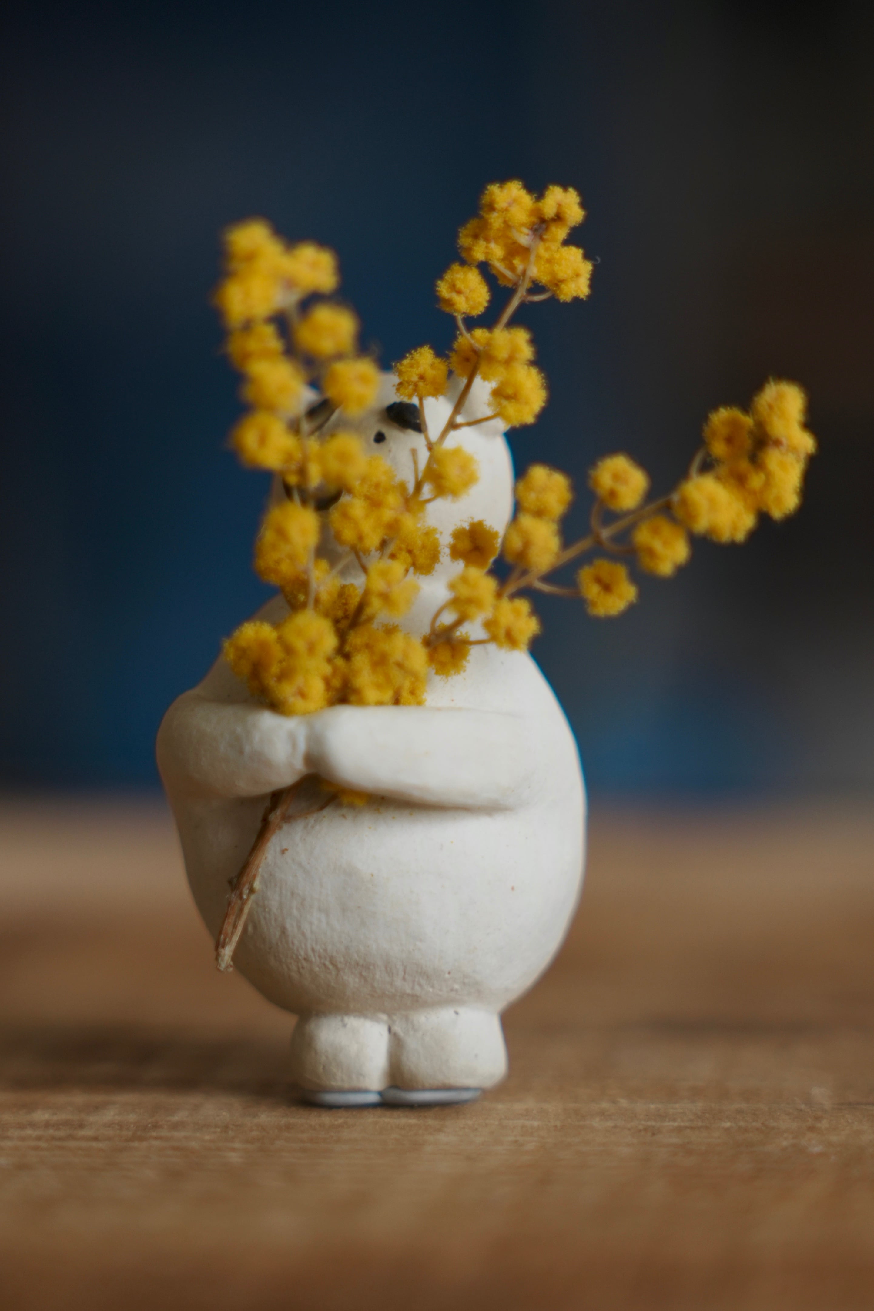 満腹シラタマ (約w40mm × h60mm) お腹いっぱいでぽってりしたシロクマ。 手元にドライフラワーなどを持たせられるような 小さな穴が空いています。