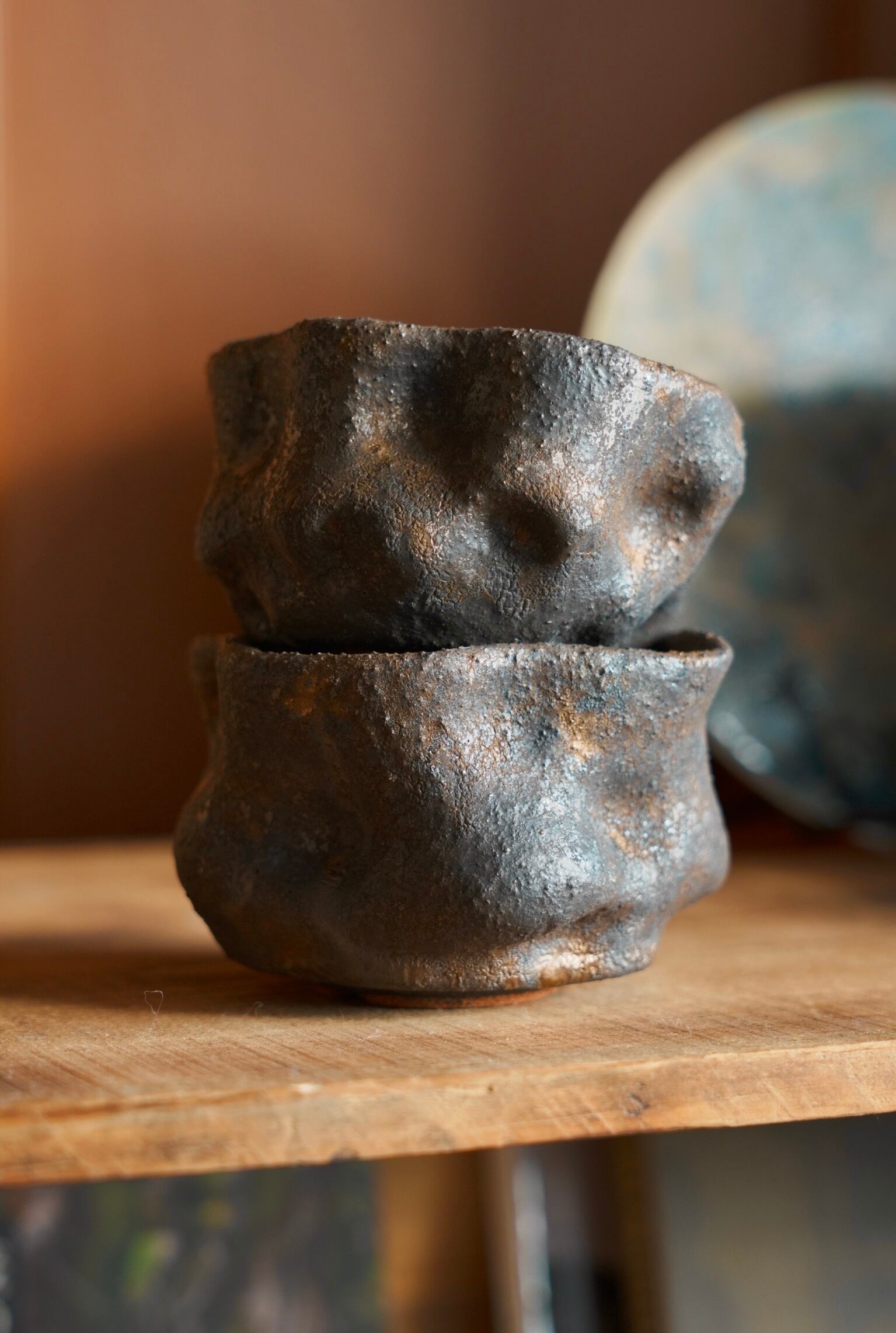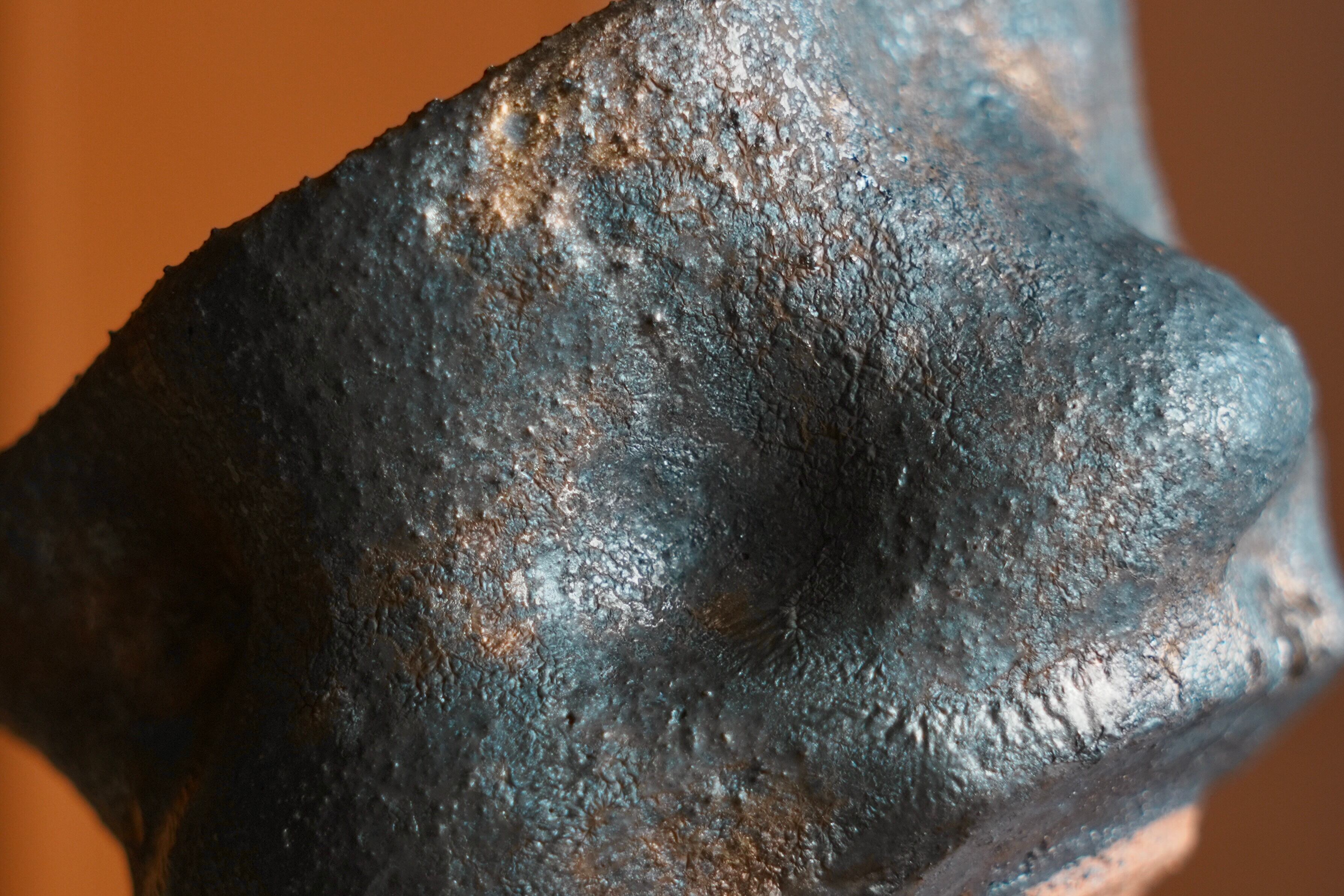 ぼくモル鉢 R-BWM (約Φ90mm × h60mm) でこりぼこりとうねり蠢く植木鉢。 ドライなブロンズタイプ。