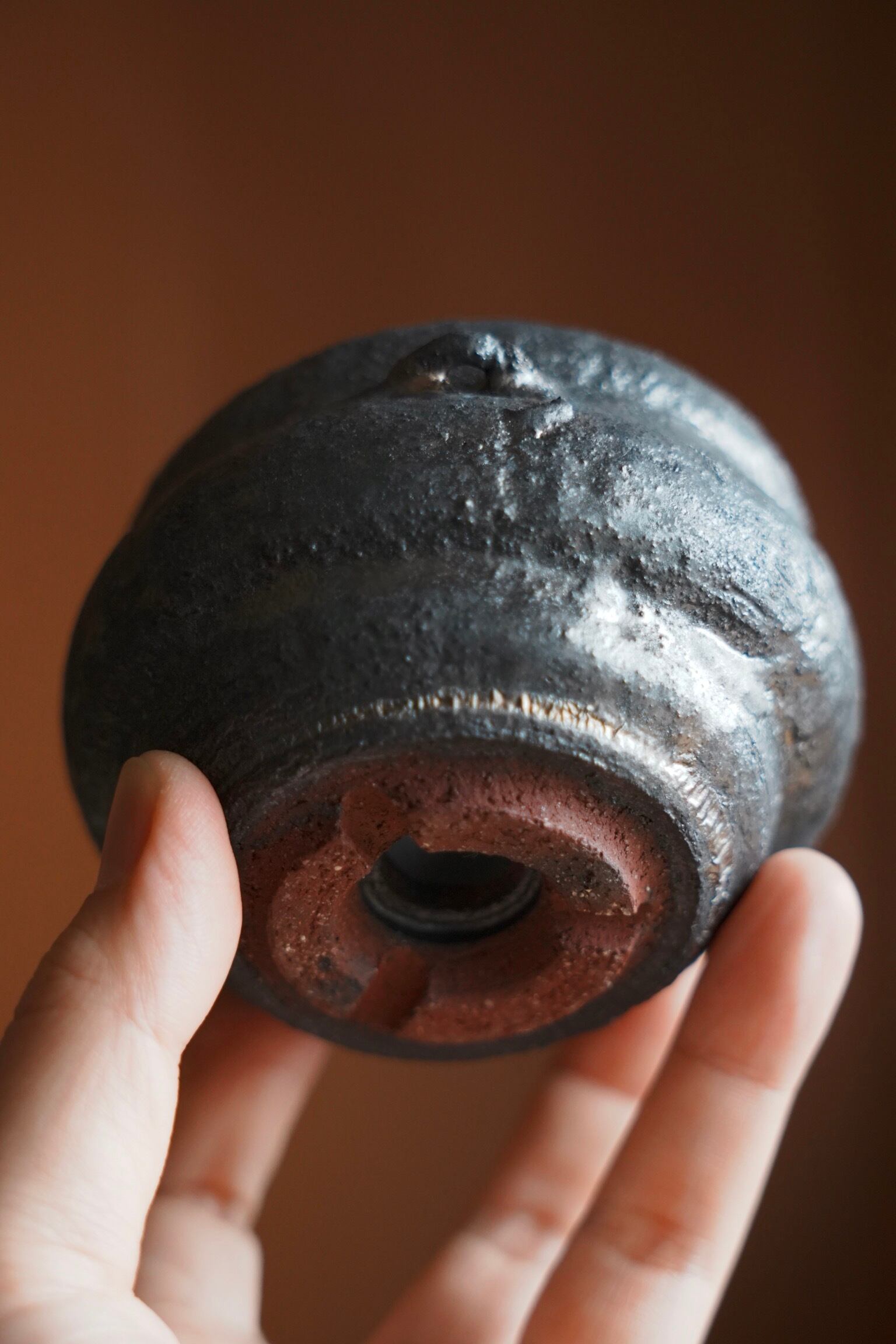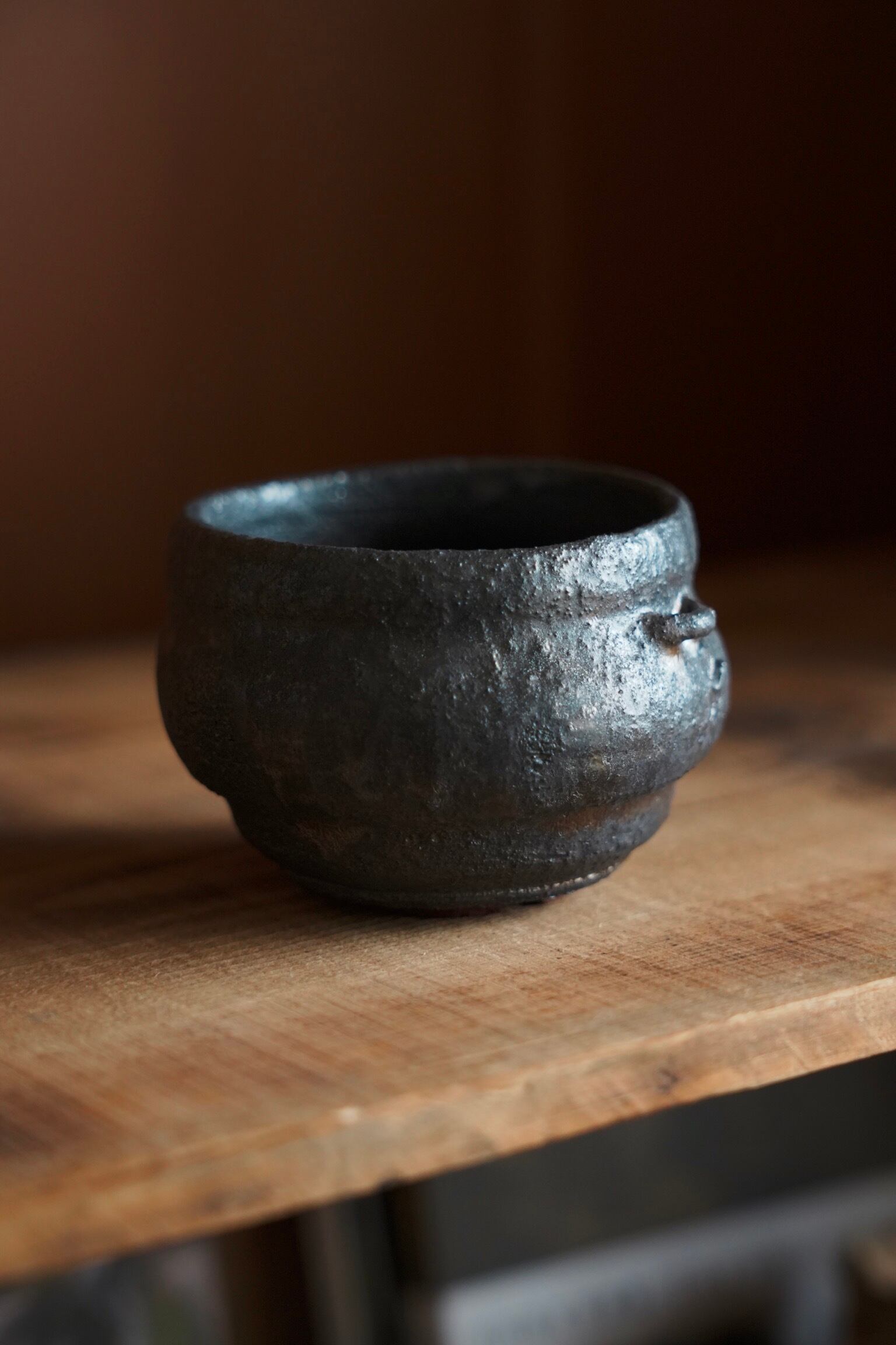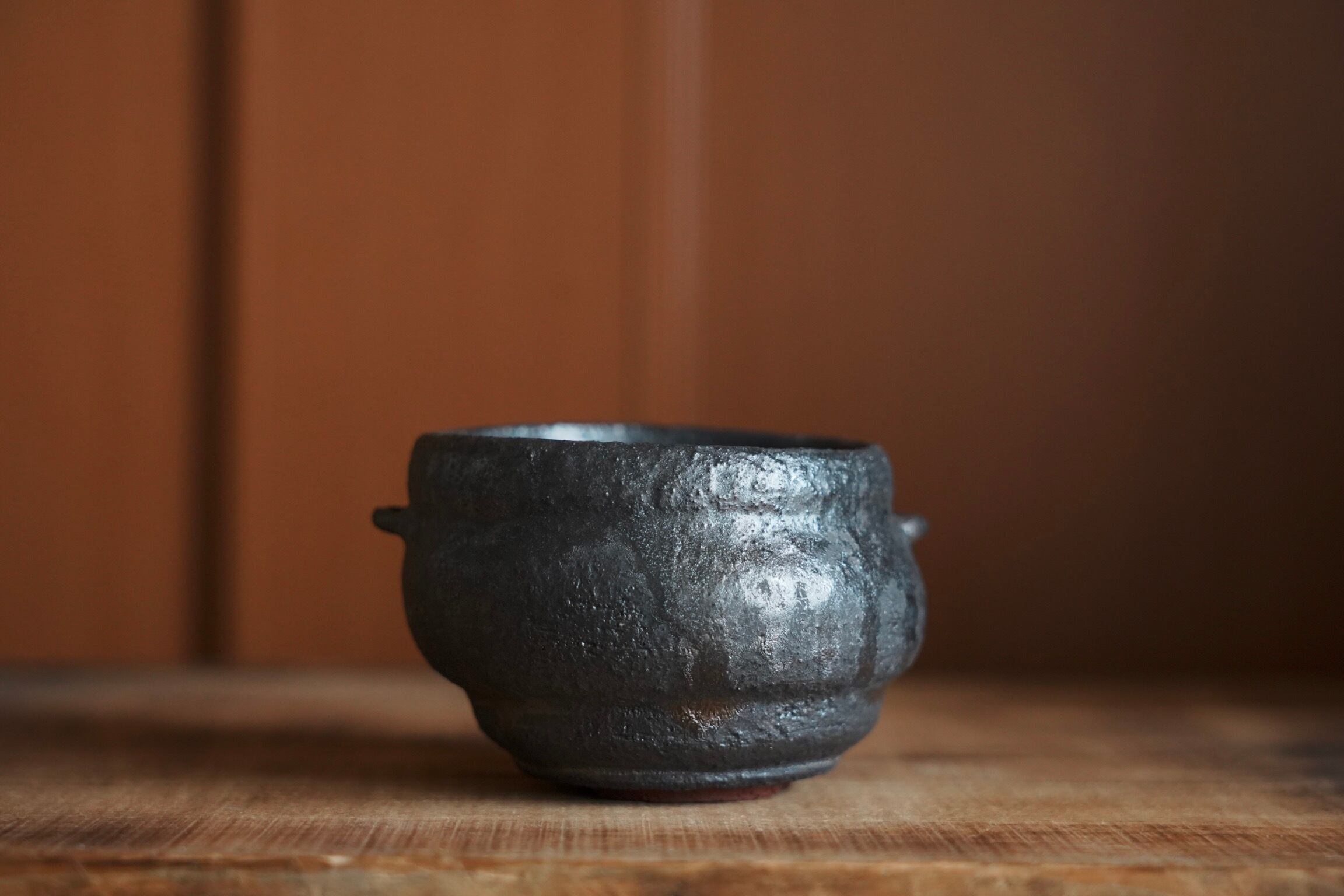 ぼくモル鉢 MB 怪獣の闇鍋 (約Φ80mm × h75mm) 怪獣たちが愛用していた、ぶくぶくと歪に膨らんだ鍋。 小鬼たちに教えてもらった闇鍋にどハマりし、闇鍋専用として使ってたみたいです。
